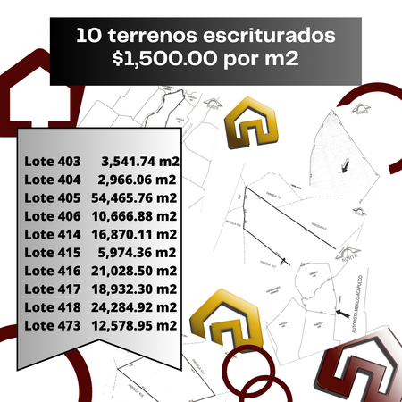 10 Terrenos residenciales o comerciales, en Santa Fe, Xochitepec; Mor. Cod. 205
