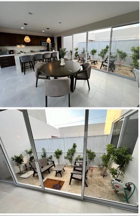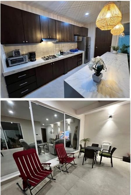 INDIVIDUAL TITLE, THE UNIT HAS 1 FLOOR, ELECTRIC GARAGE, INTERPHONE, LARGE LIVING ROOM,KITCHEN, DINING ROOM, PATIO WITH POOL, TWO AND A HALF BATHROOMS, INTERIOR GARDEN, LAUNDRY ROOM, MACHINE ROOM, 2 ROOMS WITH BATHROOM. FULLY EQUIPPED WITH MINISPLIT AIRS IN EACH AREA AND ROOMS, REFRIGERATOR, ELECTRIC STOVE, MICROWAVE, FURNISHED.