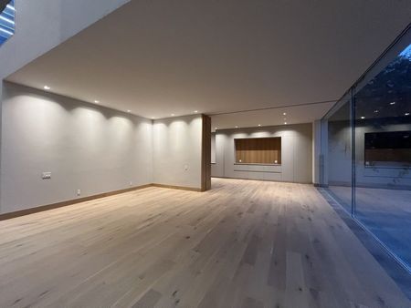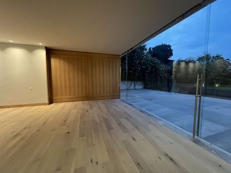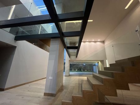 En la segunda planta subiendo desde las escaleras suspendidas y pasando por los puentes de doble cristal, llegas al family con muebles de roble blanco hechos a medida y 3 recámaras de gran tamaño con vestidor amplio y baño completo. Las recámaras traseras tienen el efecto de estar flotando.