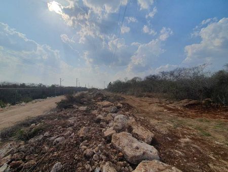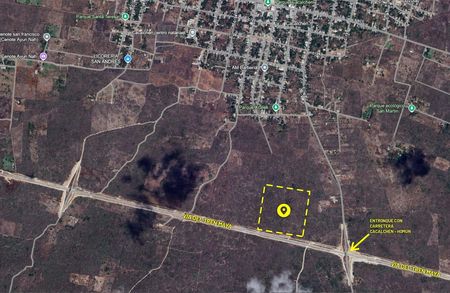 Terreno en venta en Cacalchén, Yucatán, a pie de las vías del Tren Maya, con acceso de terracería, a la altura del entronque de la Carretera Cacalchén - Homún, y justo en medio de las estaciones de Izamal y Tixkokob.