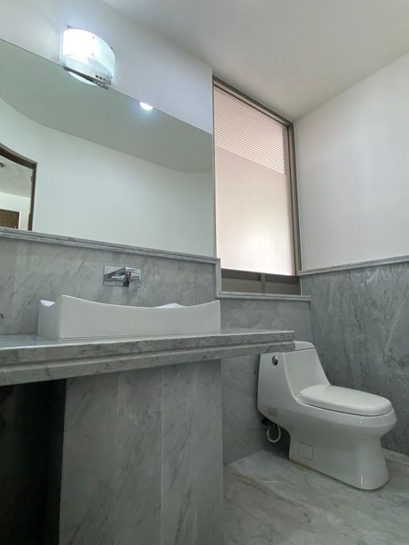 Cuenta con tres niveles, elevador, acabados de lujo, pisos en mármol, madera y loseta.