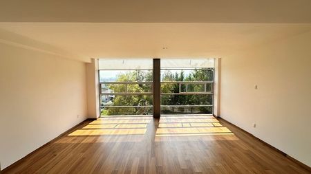 Amplia sala-comedor, con gran altura y ventanal de piso a techo. Cocina, cuarto de servicio y de lavado y patio de tendido. Family, 3 recámaras, (la principal con gran vestidor), 3 baños.