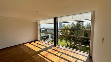 Bosque Real, La Reserva, Av. Loma Alta. Departamento nuevo en bonito edificio de 2 torres con excelente vista a copa de los árboles y buena orientación, de 315m2 a nivel planta jardín.