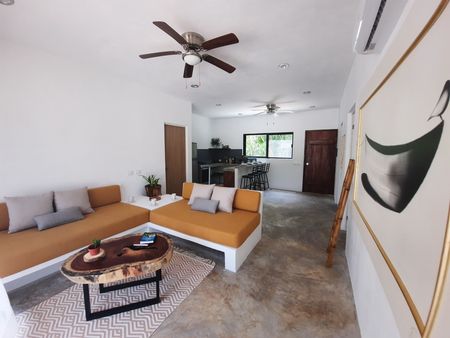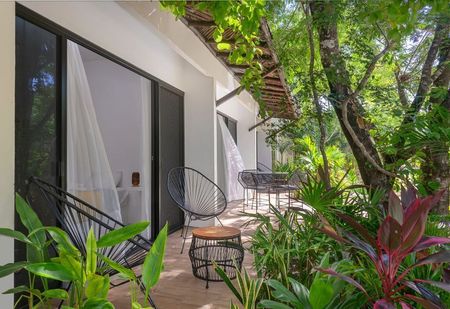 Si sueña con administrar su propio negocio de hospitalidad en el paraíso, esta oportunidad es ideal para usted. Este complejo hotelero de departamentos amigable con el medio ambiente está compuesto por cinco edificios de 2 pisos, con un total de 10 departamentos rodeados por la exuberante selva. Ofrece una gran alberca, jardines tropicales, un área de asado estilo argentino con comedor al aire libre y paneles solares para una energía más sostenible. Los departamentos tienen un diseño minimalista industrial y están totalmente amueblados y equipados para alquileres vacacionales.