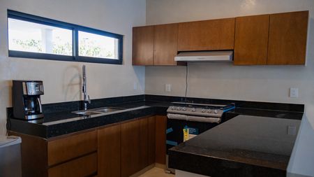 - Cocina completamente equipada con carpintería, estufa y campana.