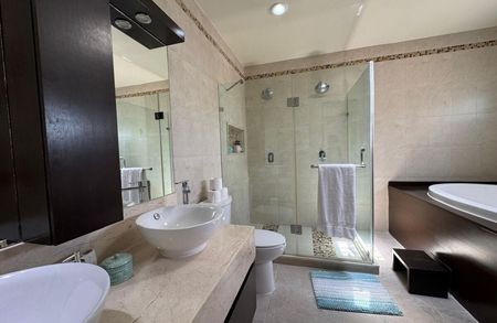 Recámara principal con walk-in closet, tina y baño con doble lavabo