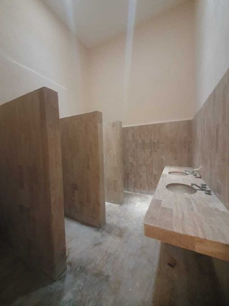 dos cuartos de baño con paredes de mármol adaptados para uso comercial (para 4 personas cada uno),