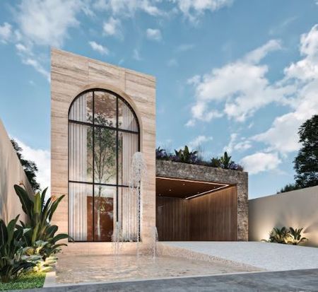 dobles alturas , pronunciadas curvas ,acabados en chukum , piedra natural y amplias jardineras que dan vida y un estilo único a la fachada e interiores; además de ser un Smart Home controlada desde la app de tu teléfono.
