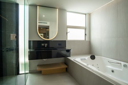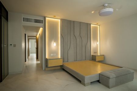 Cuanta con cuarto principal con vestidor, baño propio con tina de hidromasaje, un área para una sala de TV, una balcón agrandado, cuarto de visita, salón de TV, baño, oficina detrás de escalera