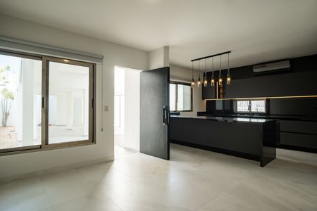 cuenta con lavavajillas, estufa de inducción, horno, lavabo, campana, alacena, instalaciones para cava de vinos, para espacio para horno de microondas, cafetera y refrigerador