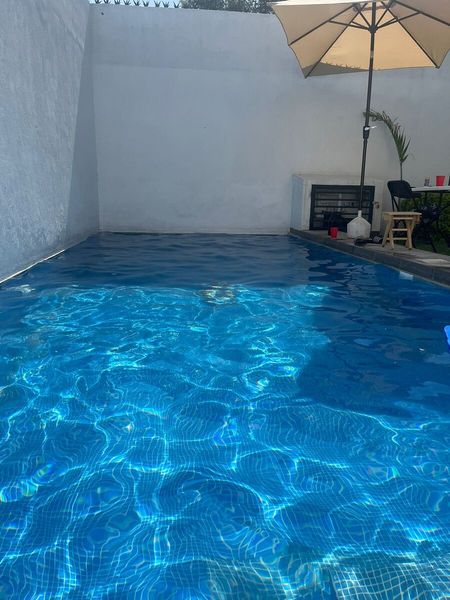 con un terreno de 128m² terreno y 117m² construcción muy bien aprovechados, esta casa cuenta con 3 recámaras y excelentes acabados, cuenta con 2 baños completos , cocina equipada y ademas una bonita |Alberca 8x3 , junto e esta un jardín amplio , para poder pasar fines de semana en compañia de la familia