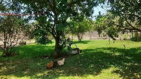 Piscina de 4.5 x 7 mts). Césped y árboles frutales barda perimetral de 2 mts de alto