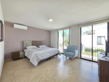 Equipamiento incluido sin costo adicional: sala, comedor para 6, refrigerador, comedor exterior y asador, family room con sillón y mueble empotrado, 2 recámaras secundarias completas con burós, recámara principal king size con pantalla y cajonera, además de decoración y enseres menores.