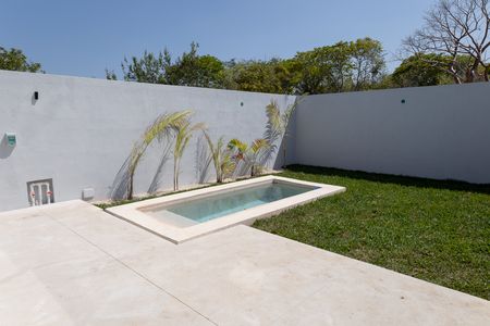 También cuenta con medio baño para visitas, terraza, piscina, sala, comedor, clóset de blancos, jardín interior y jardín trasero, terraza, estacionamiento para 2 autos y área de lavado.