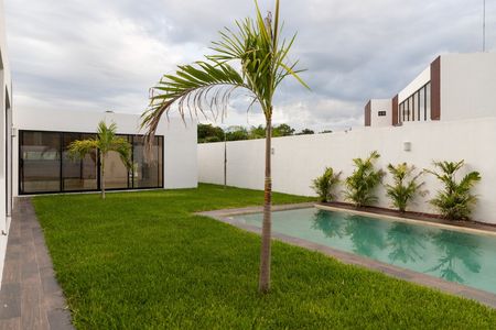 • Terraza social con alberca de 6 × 4 m en chukum, con iluminación y sistema de filtrado