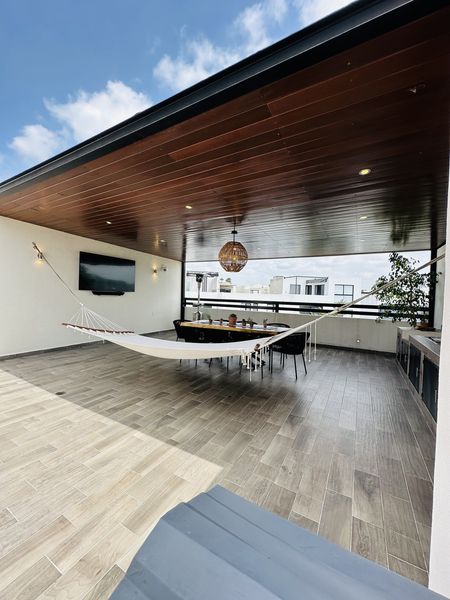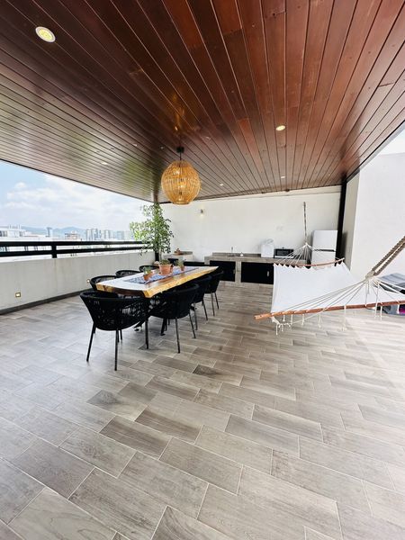 En el último piso destaca un hermoso roof garden totalmente acondicionado, perfecto para disfrutar de momentos al aire libre, equipado con pérgola, ideal para relajarse o socializar en reuniones familiares o con amigos.