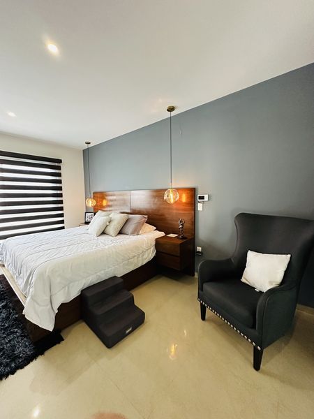 Hola amigos, hoy les comparto esta hermosa residencia que cuenta con tres recámaras amplias, perfectas para una familia grande, además de un estudio que puede utilizarse como oficina o cuarto de trabajo. El área de sala comedor es de diseño contemporáneo con doble altura y chimenea lo que permite la entrada de mucha luz natural, creando un ambiente cálido y acogedor.