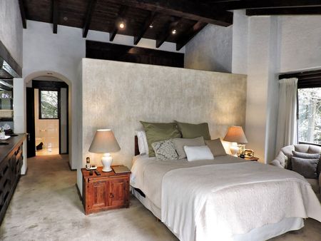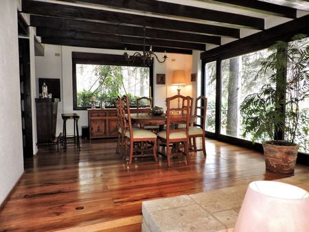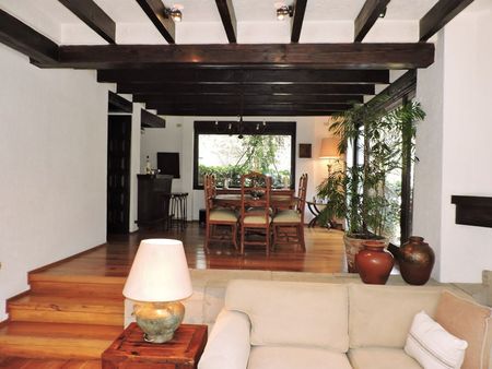 Proyecto del Arq. Artigas; en Tenis San Francisco está tu próxima residencia: con finos acabados, canteras, madera tallada, hermosas vigas de madera, amplios ventanales que brindan iluminación natural, terrazas y vistas a tu jardín arbolado.