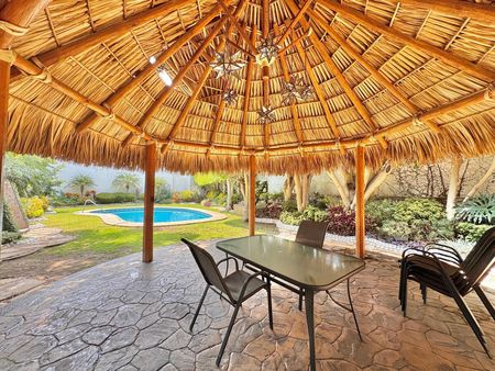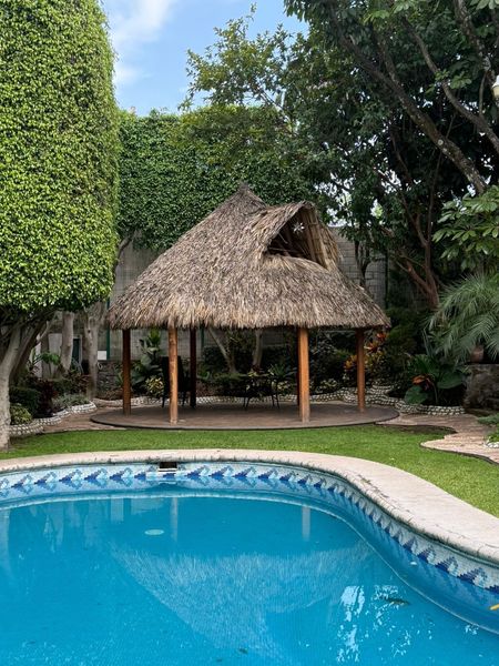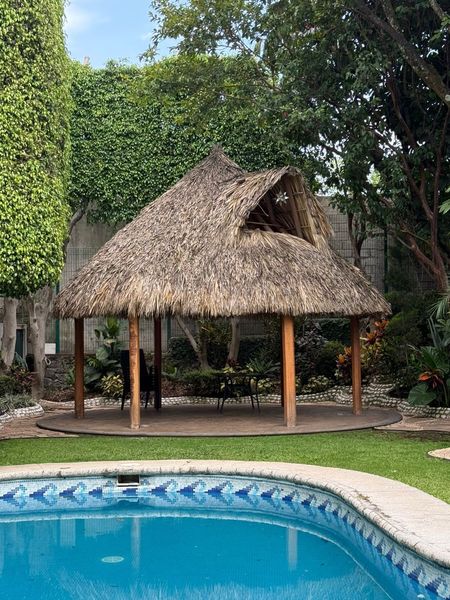 Y cuando quieras refrescarte o relajarte, basta con dar unos pasos: alberca cristalina, jardín impecable y palapa rodeados de exuberante vegetación. Solo 7 casas comparten este oasis, cuidando cada detalle y cada planta como si fuera su propio jardín.