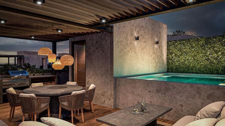 INFINITY, es una obra maestra de diseño y confort, extendiéndose sobre 257.00 m² de pura elegancia. Este modelo eleva la vida residencial a una categoría superior. En el primer nivel, la elegante sala y comedor se complementan con un acogedor family room, una cocina de vanguardia equipada, medio baño para visitas, práctica área de lavado, un sereno jardín y dos cajones de estacionamiento. El segundo nivel es un santuario de privacidad y lujo, con una recámara principal que incluye un baño completo, tocador con doble ovalín, walking closet y terraza privada, más dos recámaras adicionales, cada una con su closet y baño completo. Disfruta el espectacular roof garden, que ofrece una alberca, asoleadero y un área social con sala-comedor y medio baño, diseñado para el disfrute supremo. Infinity no es solo un hogar, es un testimonio de la vida en su máxima expresión.