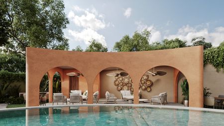 Conjunto de 6 casas en Conkal con diseño moderno, alturas interiores de 3.00 m y amenidades comunes (casa club, alberca y área de juegos). Viviendas pensadas para vida familiar con distribución funcional y acabados de calidad.