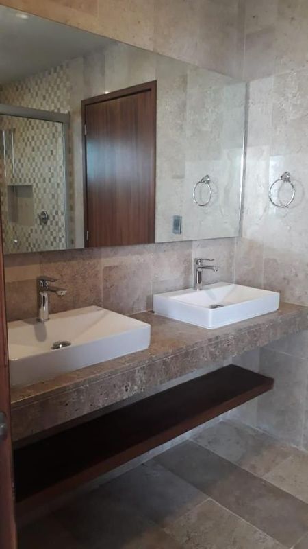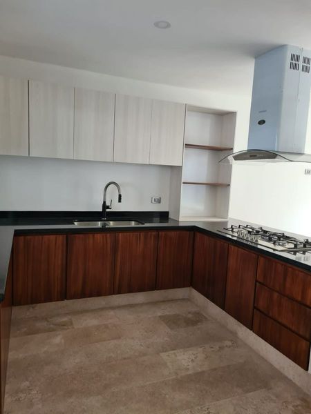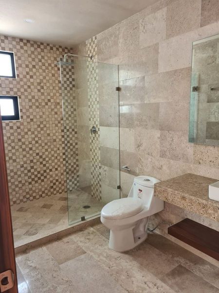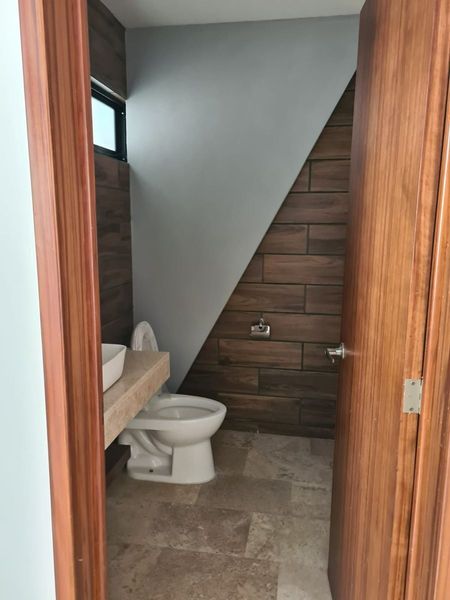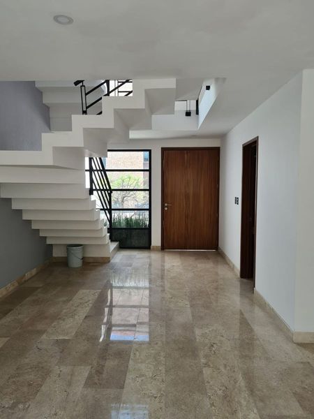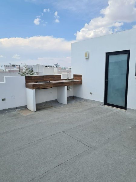 Sala, Comedor, Cocina con parrilla eléctrica, campana y una amplia alacena, Patio trasero, Tres recámaras la principal con vestidor, baño completo y balcón, las otras dos con closet y comparten baño completo, Cisterna de 8 mil litros, Roof con asador y medio baño, Cuarto de servicio. Casa club con alberca techada y salón de eventos con capacidad de 90 personas.