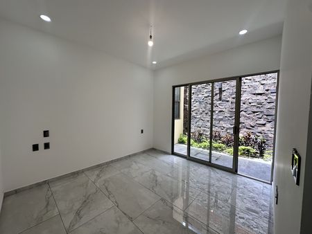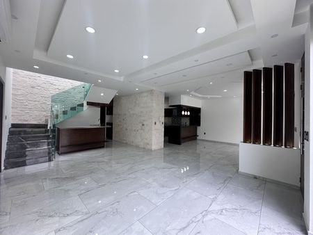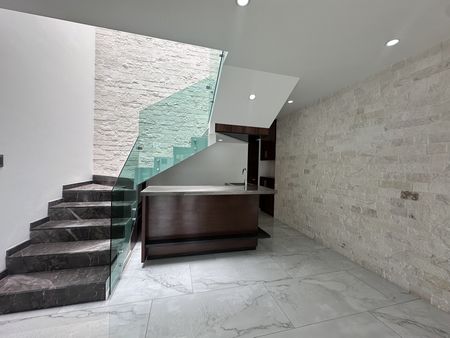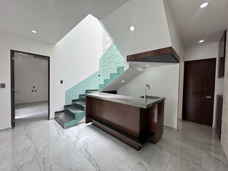 La casa está lista para estrenar recién construida . Hermoso diseño con sistema de iluminación ,luces indirectas en toda la casa , escaleras . En planta baja tenemos : una gran estancia con cocina equipada concepto de cocina abierta . Cuarto de servicio con baño y una bodega en esta zona .