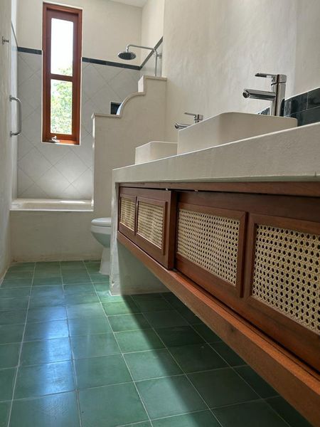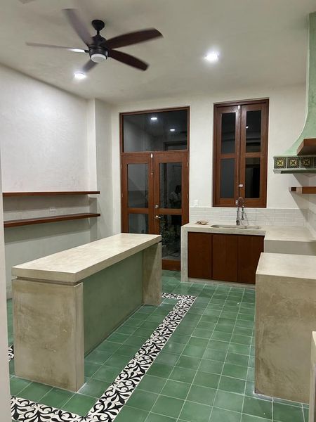 -Cocina con barra para 8 personas, carpintería completa y extractor de humo de barro.