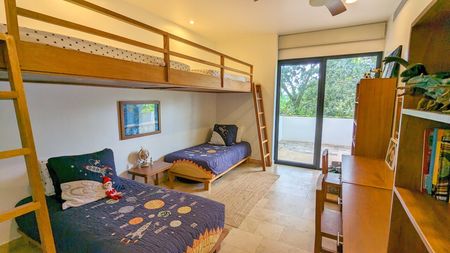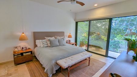 - Recámara secundaria con walk-in clóset y terraza con vista al campo de golf.