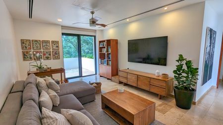 - Amplia sala y comedor con vista a la terraza y campo de golf