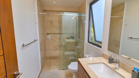 - Recámara principal con walk-in clóset, tina, regadera y doble lavabo. Además de una lindisima terraza con vista al campo de golf.