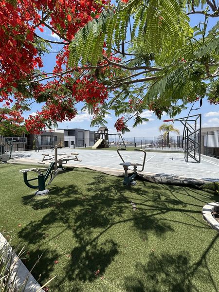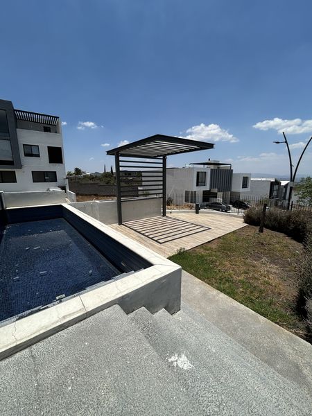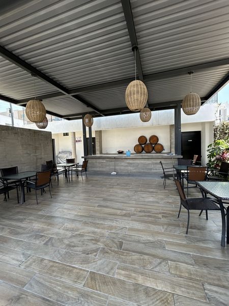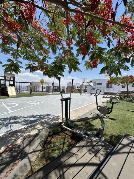 Amenidades: alberca, sala de lectura, cancha de basket, equipos de ejercicio, Estancia en común con mesas, tumbonas, zona con sombra con pérgola.
