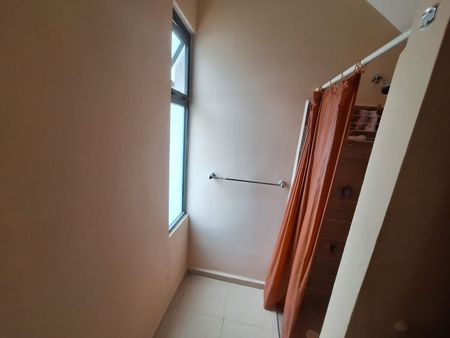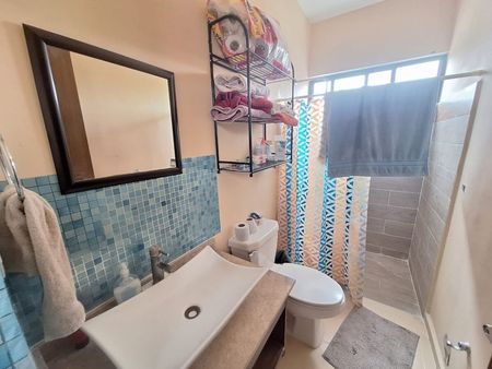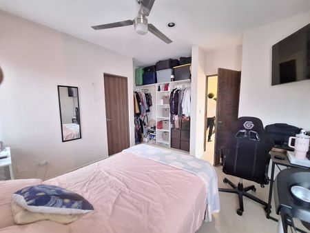 Recámara con closet semi vestido y baño completo.
