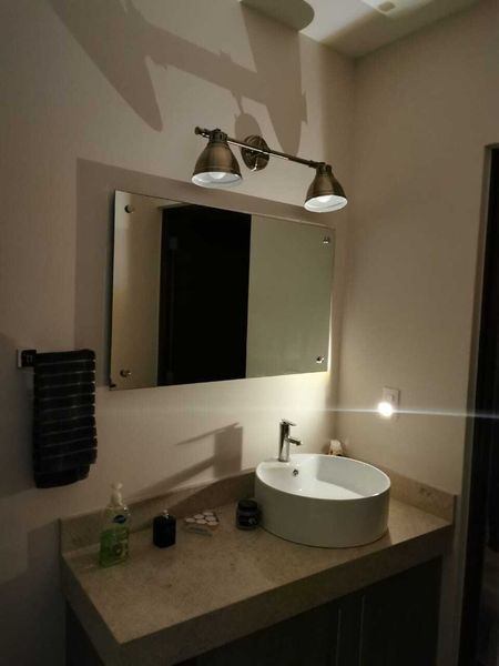 *Baños con canceles de vidrio templado de 10 mm, regaderas tipo SPA, cubiertas de marmol y detalles de madera