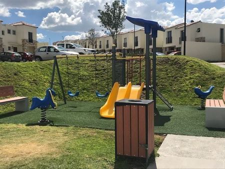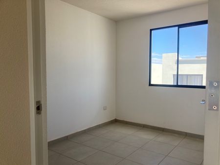 Casa en renta en privada con vigilancia las 24 hrs. con alberca. Fraccionamiento Capital Sur. Consta de dos niveles, planta baja: medio baño de visitas, sala-comedor, cocina integral, patio. Planta alta: dos recámaras con closet y un baño completo compartido. A unos minutos del Parque Industrial el Marques. Ideal para ejecutivo. Casi sobre la autopista Qro-Mex, justo pasando el Conín. La renta incluye mantto.