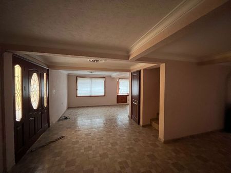 La planta baja cuenta con: sala con chimenea, comedor, cocina, un medio baño, cuarto de herramientas, cuarto de estudio o tv, área de lavado, amplio jardín, cisterna y estacionamiento para 10 autos.