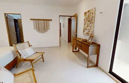 Este modelo de dos plantas cuenta con cuatro recámaras, cada una con su propio baño, y un baño adicional para visitas. Su diseño moderno y minimalista, combinado con acabados de alta calidad, crea un ambiente de lujo y tranquilidad.