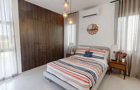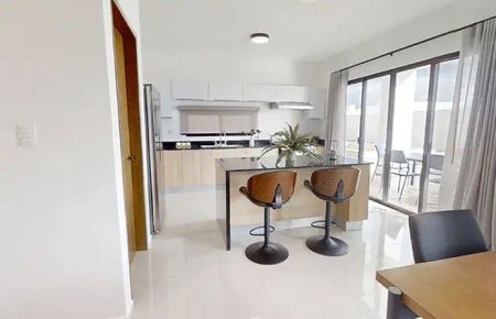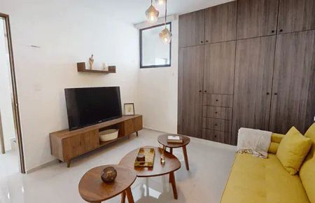Se entrega con carpintería en cocina equipada con estufa, campana, refrigerador, mosquiteros, boiler, a/c en recamaras, focos inteligentes para controlar la iluminación aunque estes fuera de casa, piscina con pasto en jardín frente a casa y jardín de piscina.