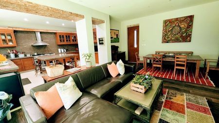 Al entrar, serás recibido por un jardín encantador con una terraza y chimenea. En el interior, encontrarás una sala/comedor con puertas corredizas que dan al jardín, una cocina espectacular abierta a un family room que es el corazón de la casa, y un espacio para bar con futbolito y acceso al jardín.