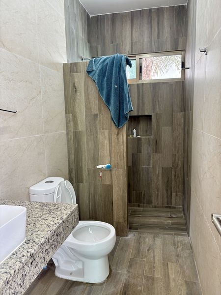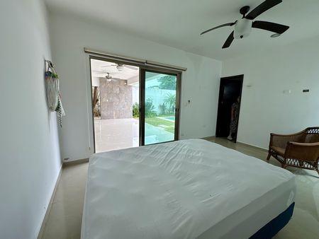 3 recámaras con baño, closet vestidor, aire acondicionado, ventilador, cortinas, la principal con amplia terraza, con vista al jardín y a la piscina.
