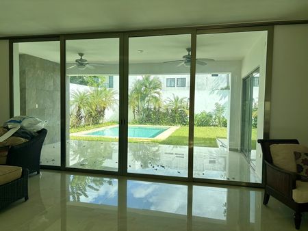 La casa cuenta con aires acondicionados en la sala comedor y recámaras, ventiladores, cortinas, paneles solares, calentador eléctrico, sistema de purificación de agua, sistema de riego.