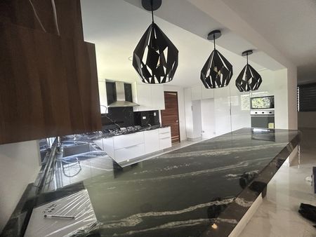 Cocina Integral con cubierta de cuarzo, equipada con horno, lavavajillas y amplia alacena