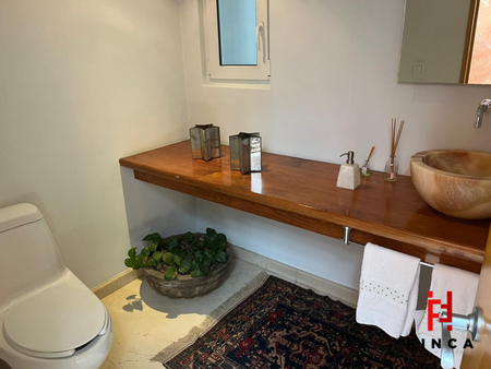 La casa cuenta con paneles solares y un gym en la parte de la azotea. También tiene estacionamiento para 3 coches o camionetas grandes y un cuarto con baño y regadera para chofer.