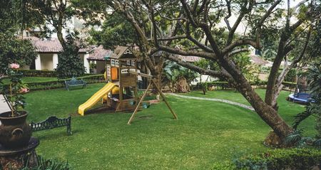 Hermoso jardín, juegos para niños, tumbling, completamente equipada.
