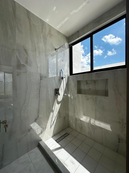 • Baño para área de alberca (2.5 m x 1.85 m) con sanitario, lavabo, regadera, iluminación y ventilación natural