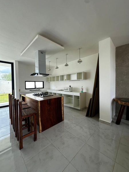 • Cocina equipada con tarja, llave tipo teléfono, campana, isla y estufa empotrada de 6 quemadores