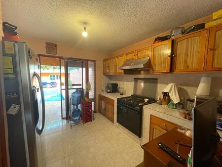 En una superficie total de 895 m2 de terreno y 511 m2 construidos. La propiedad está distribuida en 2 predios, uno con aprox. 735 m2 de terreno y 311 m2 construidos, consta de 1 amplio departamento en Planta Alta, dos amplios locales con baño en Planta Baja y dan a la calle con uso de suelo mixto, jardín arbolado, alberca y cancha de frontón o de usos múltiples, además de 2 bodegas y varios estacionamientos.