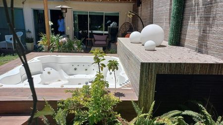 En planta baja se encuentran dos recámaras con baño completo, una de ellas con jacuzzi y vista al jardín trasero, ambas equipadas con aire acondicionado, televisión y frigobar. También cuenta con cocina integral, cuarto de lavado con lavadora y secadora, sala-comedor con televisión, jardín con jacuzzi, fuente y regadera, área de sauna y masajes, además de una bodega. La cochera es para dos autos con portón eléctrico independiente. En planta alta hay cuatro recámaras amuebladas, cada una con baño completo, tres de ellas con jacuzzi y balcón. En la parte frontal de la planta baja se encuentra un departamento independiente que incluye baño completo, cocina, jacuzzi y sala. Ideal para inversión y arrendamiento por recámara. Libre de gravamen.