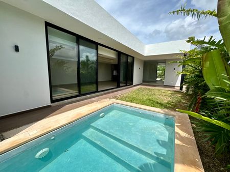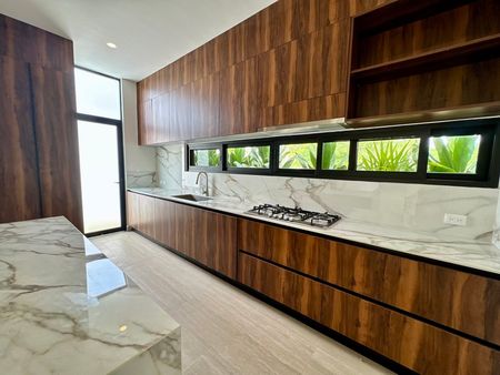 Esta hermosa casa está ubicada en la privada Olivia, un residencial en Conkal, Yucatán, que está compuesto por 104 lotes residenciales distribuidos en un poco más de 10 Ha., todos con vista a áreas comunes y jardineras totalmente animadas y arboladas.