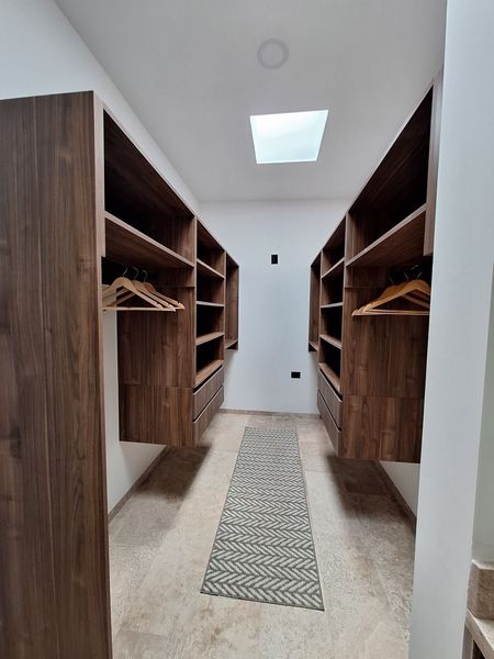 Recamara principal con closet vestidor, baño completo con doble lavabo.